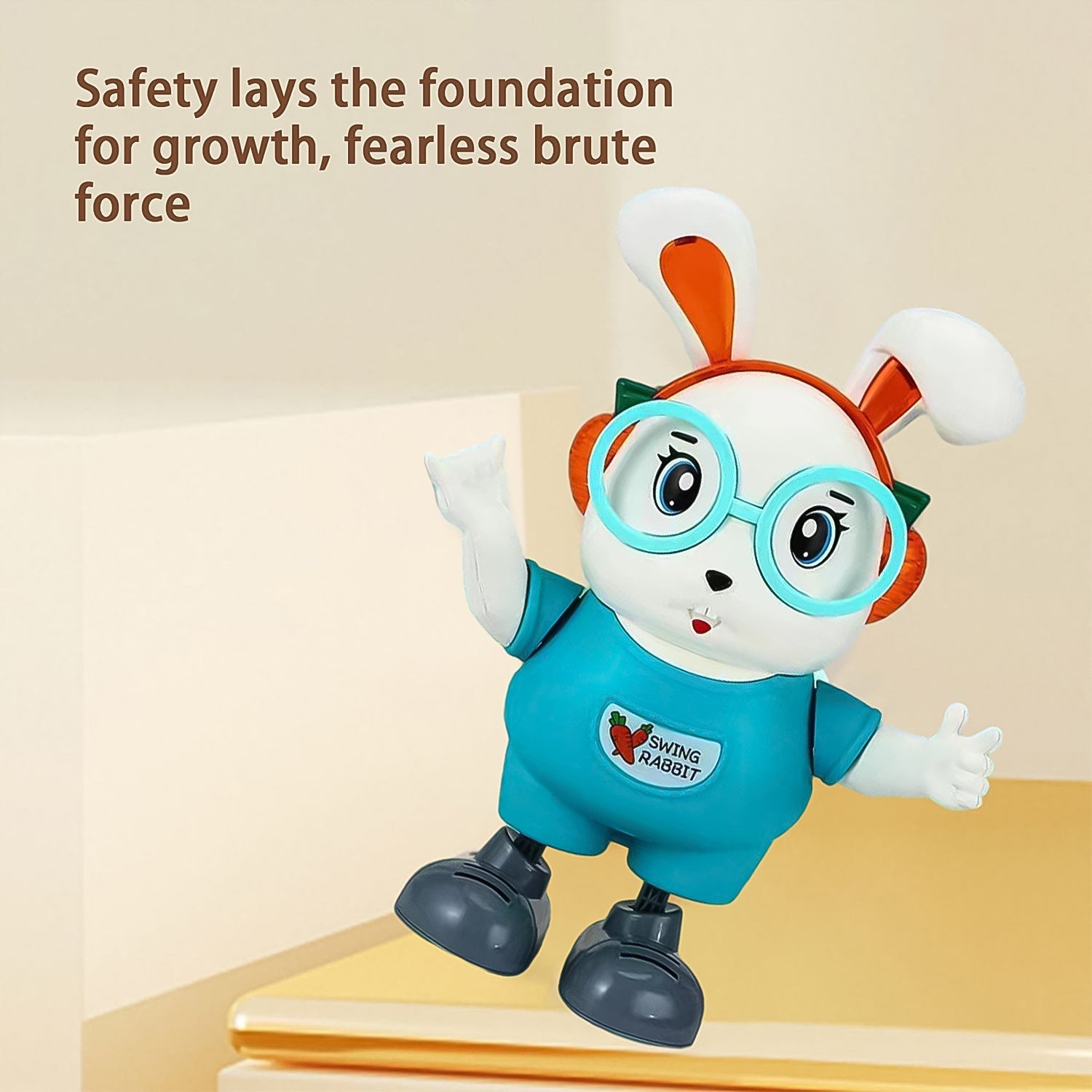 Bring joy and excitement to your child’s playtime with the Swing Rabbit Musical Dancing Toy! Designed to delight young hearts, this adorable bunny features big cartoon eyes, a cute round body, and oversized glasses that instantly grab attention. Dressed in a sky-blue outfit with a “Swing Rabbit” badge and headphones, it’s more than just a toy—it’s a tiny entertainer!